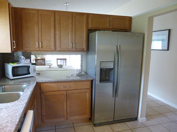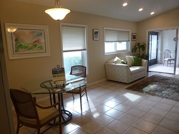 Remodeled, ready to move in, 2BR/2BA villa w/ attached garage plus 2 additional parking spots in front of unit. Features vaulted ceilings, tile throughout, newly redone kitchen with new cabinets and granite countertop. New Appliances. New Washer/dryer. New hurricane vinyl windows. Hurricane garage door. New A/C, new paint, updated bathrooms with new granite top vanities. North and east exposure. Community features beautiful Olympic size pool, clubhouse, well-maintained grounds with tennis and racketball courts.