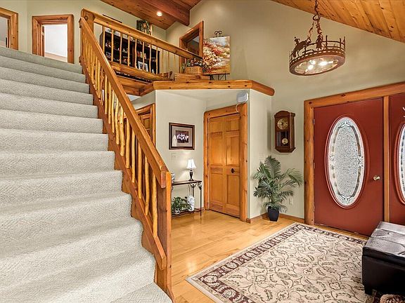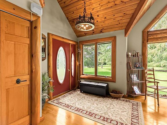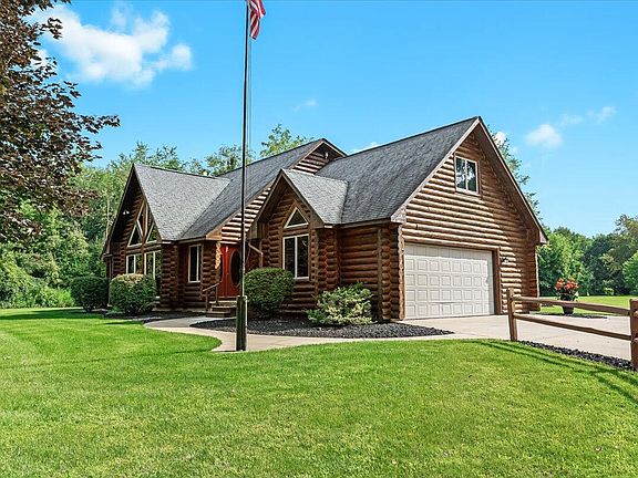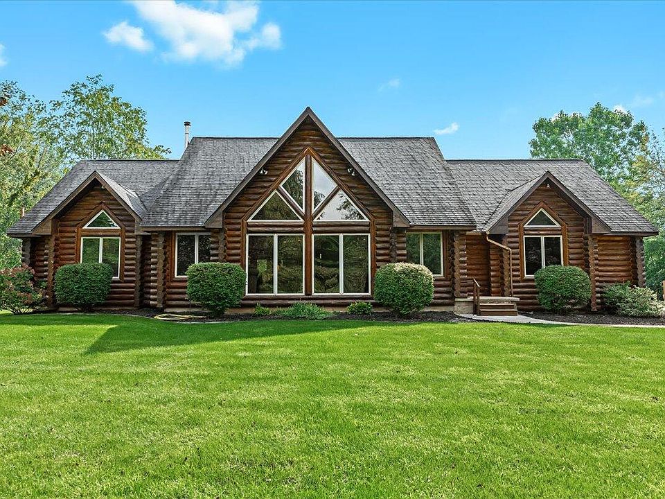 Nestled on an expansive 7.82-acre lot, this captivating custom-built log home offers an exceptional blend of rustic charm and modern luxury. With meticulous attention to detail and an awe-inspiring setting, this property is a true retreat for those seeking tranquility, comfort, and distinctive craftsmanship. Step inside and be greeted by the warm embrace of the natural wood details that adorn every corner of this magnificent residence. Enjoy the views from the floor-to-ceiling windows in the large great room with a vaulted ceiling, recessed lighting, and a wood-burning fireplace. The open floor plan flows seamlessly to the dining area with access to the covered back deck that overlooks the pristine landscaping. Great for entertaining or watching the wildlife with your morning coffee. The chef's kitchen features stainless appliances, a breakfast bar, and a gorgeous custom log island. Enjoy the convenience of the large first-floor primary suite which also enjoys deck access. The spa-like ensuite includes a jetted tub and walk-in shower. Upstairs find 2 generous bedrooms and a full bath. The loft space along the catwalk invites creative uses and overlooks the great room. Additionally, a large bonus room presents endless possibilities. This beautiful home is truly one of a kind.