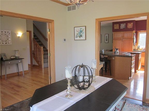 Fantastic opportunity! Custom built open floor plan with 10 foot ceilings, recessed can lighting, views from every window of the beautiful 1.62 acre lot. Very private setting with fenced in yard with extra-large concrete apron for extra parking. Front porch is wide enough for lots of seating, rear deck perfect for outside entertainment, ground rubber playground area surrounded by fencing. Open foyer area opens to kitchen area and great room area with wood burning fireplace flanked on both sides with built in bookcases. Formal dining room with bay window, kitchen has center kitchen island and a desk area to keep you organized. Natural light filled sunroom with access to the rear deck. First floor bedroom or home office, a mud room area right off the garage for extra boots and coats. Three car attached garage right off the mud room, tons of space for vehicles and any other toys you want to store. The second floor has an amazing skylight flooding the steps with natural light on the top of the stairs an amazing laundry room, two additional bedrooms and a full bathroom. The owners suite has amazing front facing windows and walk in closet. The bath consists of walk n steam shower, soaking tub and vanity. This property has a new Geothermal heating and cooling system, water softener, and central vacuum system. Dont miss out call for your private showing.