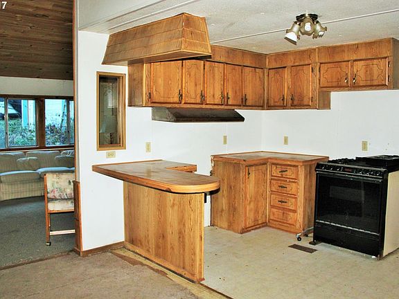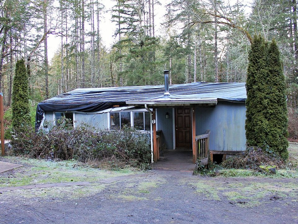 Great potential! Located on 2 acres this is a wonderful investment property that is tucked off the road with a huge shop. Home has a vaulted living room with wood burning stove. Kitchen with an eating-bar is open to the vaulted dining space. Spacious deck off the back. Surrounded by trees and sets back off the main road which gives a nice private feel. Don't miss out on this great opportunity! CASH BUYER ONLY.