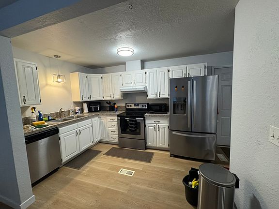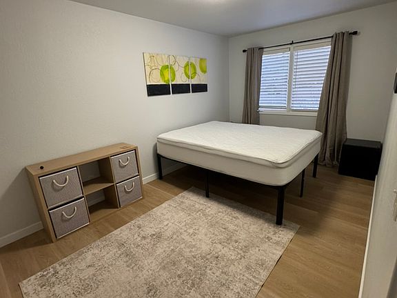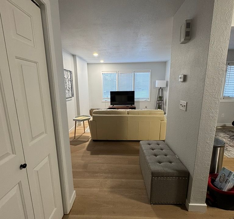 Shared spaces include a comfortable living area, a fully equipped kitchen with updated appliances, and a clean, functional bathroom stocked with essentials. The unit also includes in-unit laundry, reliable Wi-Fi, and dedicated parking.