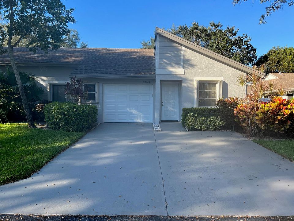 Beautiful 2 bedroom, 2 full bath, plus Florida room villa in gated Whisper Walk, a 55+ community. Freshly painted with neutral colors, clean, all tiled floors, hurricane shutters, and 1 car garage plus 2 car driveway. The community has two gated entrances, eight tennis courts, four handball/paddle ball, basketball, walking trails with lakes and beautiful scenery, pool, hot tub, clubhouse with billiards room, exercise room, library. Great central location. Broker Owner.