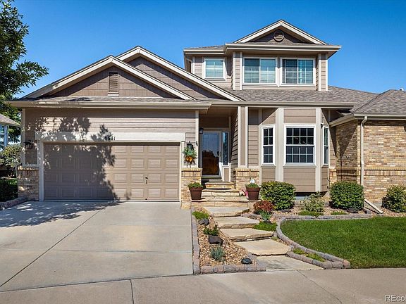 Love where you live and live where you play in this Beautiful Crescent Ridge paired home with million-dollar views of the Rocky Mountains, Flatirons and Standley Lake! A rare find in Arvada, just steps away from trails around Standley Lake Regional Park. Your 500 sq ft covered deck is the perfect spot to dine al-fresco as you watch eagles, hawks and pelicans soar majestically above the lake. Nature is abundant in this fantastic neighborhood with mature trees and a canal that runs along the neighborhood. Enjoy seeing fox, bobcat and coyotes meandering through and ducks floating with their ducklings. An elegant covered entry welcomes you home to architecturally interesting elements throughout. West facing windows in the family room, kitchen, primary bedroom and guest room frame stunning lake and mountain views. Main level kitchen boasts beautiful granite, an island, a brand-new cooktop, plenty of tall cupboards and a large pantry. All appliances stay, including the gym equipment. In 2022 a stone wall with insert TV, bookcase and linear gas fireplace updated the family room along with new paint throughout. The upper level is host to the primary suite with a 5-piece bath and walk-in closet. The open loft is spacious with a big closet. Upper guest bedroom has its own full bath. Basement is finished with a bonus room, 3rd bedroom with ensuite and a walk-in closet, a fully equipped gym and yet another pantry and storage room with shelving. Newer furnace and central air installed in 2017. Exterior of home was painted by the HOA in June, 2023 - Just one of the perks of having a self-managed HOA that maintains the exterior of the homes, the roofs, gutters, the lawn landscaping, snow removal and trash service. There are 28 homes in the community. The home’s HOA fees have been paid to December 31, 2023.
