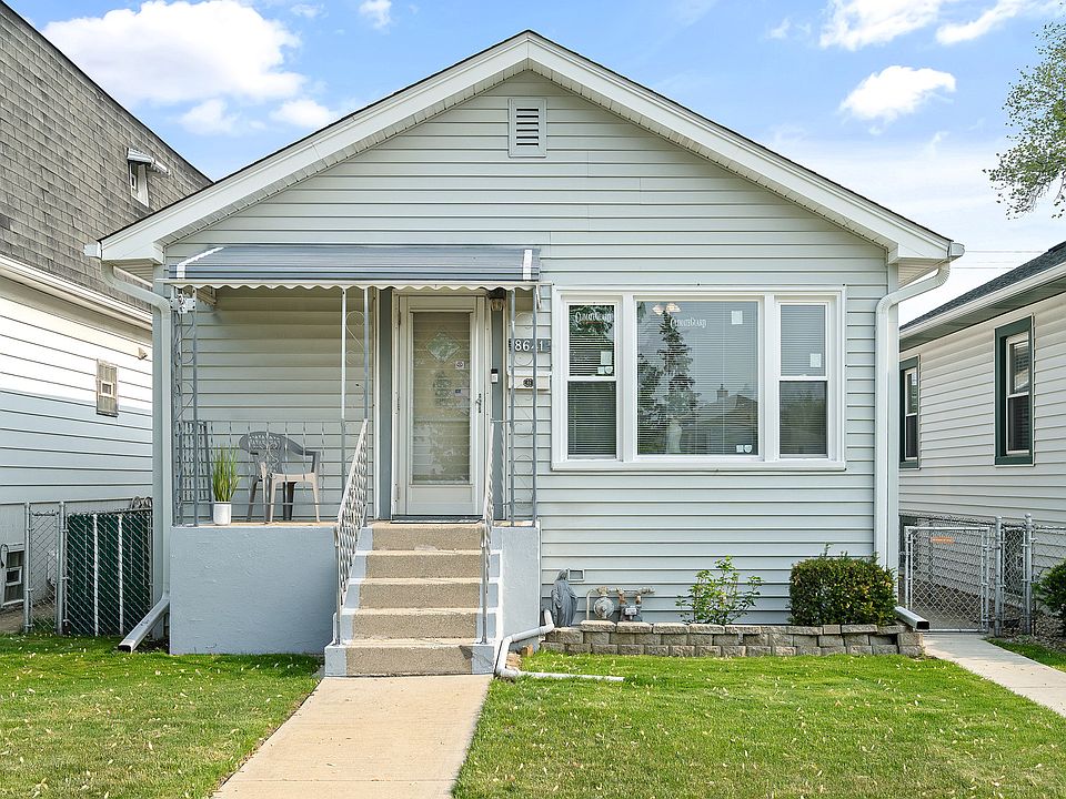 WOW, check out this remodeled vinyl sided 3 bedroom bungalow just blocks away from Rhodes Elementary School grades 1 thru 8, Triton College, Trumbull Park, Forest Preserves, and Costco. Refinished hardwood floors, new ceiling fans and light fixtures. The whole house has been freshly painted. Nice sized eat in kitchen with brand new 42" white shaker soft close cabinets, stone backsplash, and brand new appliances. Stainless steel Frigidaire side by side refrigerator with water/ice dispenser, Stainless steel Maytag 5 burner gas stove with an over the stove GE microwave. Brand new laminate vinyl plank flooring. 3 bedrooms with nice sized closets. All windows have been replaced. Some are brand new. Updated bathroom has a new vanity, toilet, light fixtures, and exhaust fan. Updated electrical throughout. Lennox Furnace 5 to 6 years old. Unfinished basement has glass block windows and has been freshly painted. There is an exterior exit out to the back yard. Fenced yard, cement patio, and 2.5 car garage. Quick close and possession. Flood insurance is NOT required.