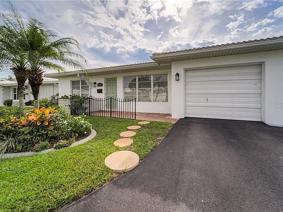 Leisure Villas West is a target destination for anyone looking for a peaceful 55+ community. Here, you will absolutely have it all! With 900 square feet of living space plus a generously sized Florida room with additional storage, you will have the perfect amount of space. Upgraded highly durable wood-look vinyl flooring has been installed in every room. The gourmet-style kitchen features a beautiful stainless steel appliance package and high-quality granite counter-tops with accompanying maple cabinetry. Owners have replaced all doors and light fixtures as well. With all of the remodeling, upgrades and updates, this home is practically brand new. As you flow from the great room to the kitchen and dining, you will notice that this home does an outstanding job of capturing light to maximize its super-efficient floor plan. The master bathroom is fully adorned with a lovely granite-topped vanity and the amount of storage space in the walk in custom shelving closet is ample to say the least! Need things to do? Warm Mineral Springs is just a hop, skip and jump away! Perfection awaits! Buyer to verify all measurements. Some photos virtually staged.