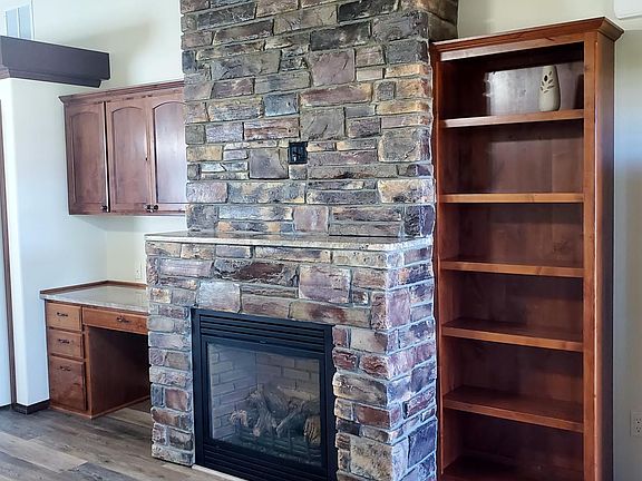 Designer Finishes in this spacious 2 bedroom with built-in office/work space area at Golden Spike 55+. Covered front and rear porches with pavers and beautiful mountain views from back patio and yard. Sun room attached to master bedroom, double sinks master and low step shower,, fully wrapped windows, floor to ceiling rock fireplace, full glass tile backsplashes, granite, pantry, breakfast bar, A/C, gas range and even raised beds for gardening. Guest bedroom has great storage with 3 closets and needs flooring. All Golden Spike amenities included as well as Water, Sewer, Garbage and wifi signal in community fee. RV/Boat storage at an added cost of $25/mo. Estate Sale, Home Sold ''AS IS''.