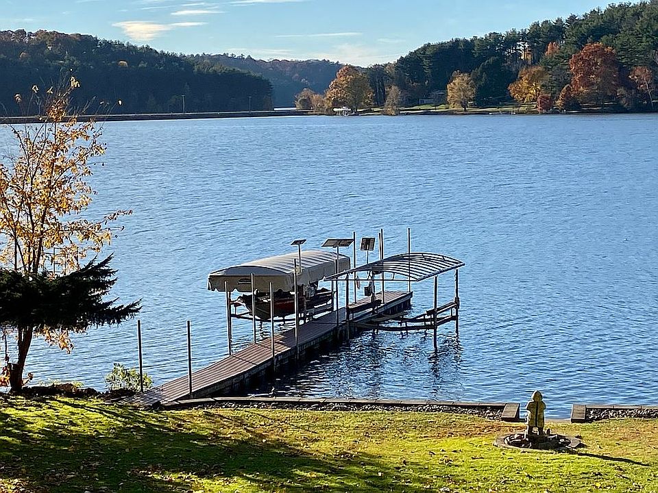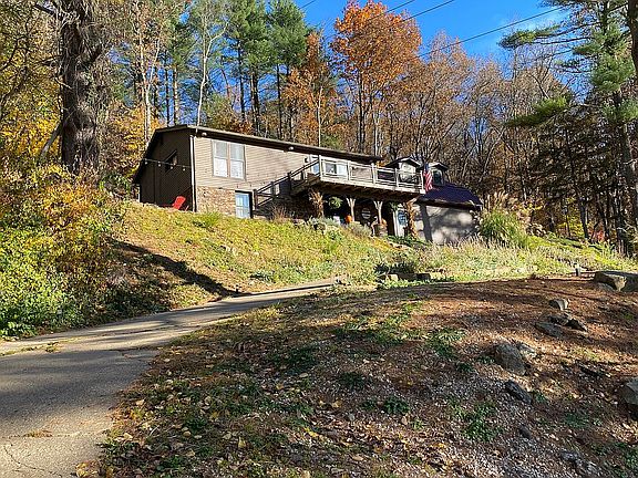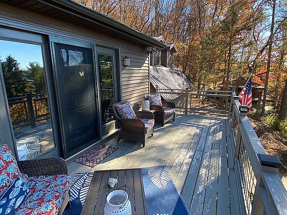 Picturesque lake views located in peaceful Tappan Lake cottage area. Tongue and groove pine ceilings throughout the first floor. Second floor offers an additional, private space with a stone fireplace in the living room and 3 French doors to a raised balcony. Formal dining room includes French doors to the rear deck and 10 x 24 wrapped around front deck with scenic lake views and stunning sunsets. 2 story 2 car detached garage includes a 252 sq ft 2nd floor suite with tongue and groove pine ceilings and 2 dormer windows with lake views. New metal roof on both home and garage. Private dock on the water and electric boat lift is included. This unique total 2,176 sq ft home provides enough space for year round living or is perfect retreat for the whole family. Includes new gas range, new dishwasher, new microwave (upper floor) and electric range and refrigerator in the first floor kitchen with pantry. Viewing is by appointment only. (440) 915-5952 or kraicevich@gmail.com MWCD lease fee for 2022 is $1789