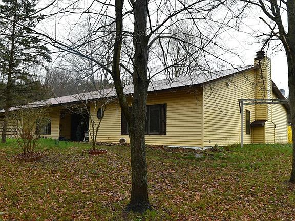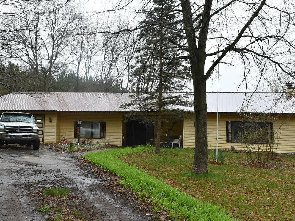 Well-kept 2 bed, 2 bath ranch-style home on 10 beautiful acres. Sits nearly 1/2 mile off the main road so quietude and privacy are abundant. Nearly 2000 sq ft, this home offers a formal dining room, large kitchen with eat-in dining area, living and family rooms, and large bedrooms. The family room has a natural wood fireplace to cozy up in front of on all those cool days. 2 stall attached garage, and large storage shed with attached cellar and greenhouse are perfect for all your outdoor toys and tools. Plenty of trees and trails on the property, perfect for the outdoor enthusiast.