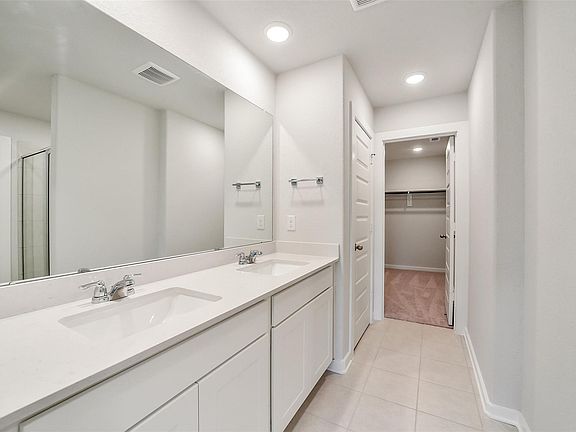 Sleek white cabinetsFlex spaceCovered patioLarge closetStylish kitchen islandPrimary suite