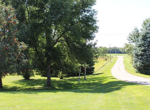 Very private and secluded hobby on tar road just outside of city limits, long driveway, 41 x 29 det gar w/drain, 2 att gar, 12 x 26 shop, 18 x 36 tin shed w/att fence, 40 x 60 tin shed partial concrete floor/heated; 40 x 32 tin shed with tin roof with 30 x 40 heated, all sheds and garages have automatic gar door openers, 3800 trees planted and previous CRP land, forced air, corn burning unit plus wood burning fireplace for supplemental heat.