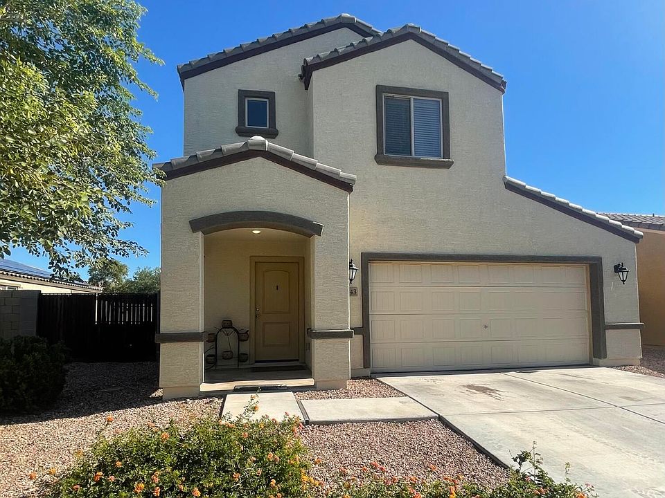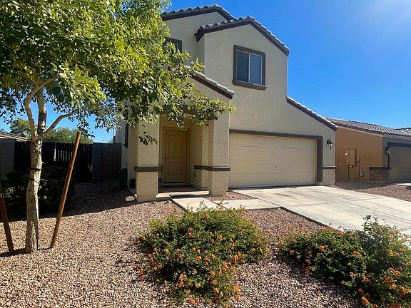Move in ready home built in 2018. Downstairs features half bath, cozy living room, kitchen and eat in kitchen area. All bedrooms are nestled upstairs with laundry room. Large master room offers walk in closet. Double sinks at upstairs bath. AC compressor replaced 2019. Large Backyard with apple, citrus, and guava trees. Close to Buckeye Sports Field, Hidden Lake and Downtown Buckeye Shops and Eateries.