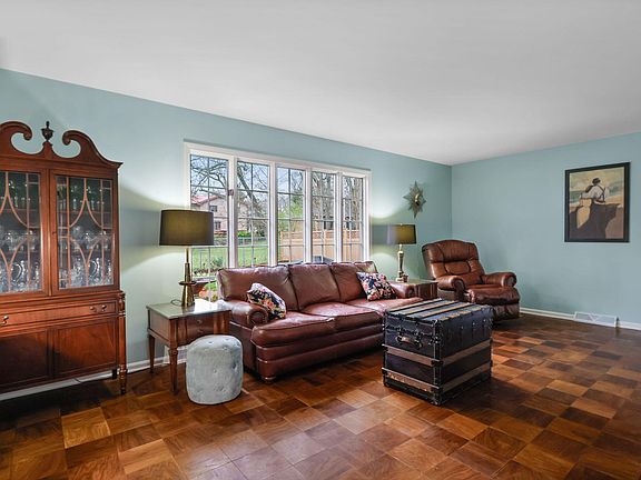 Charming 4 bedroom brick ranch nestled on a beautiful, large lot in the prestigious Hill and Vale neighborhood of Munter! Starting at the double door entry through the entire home, is a well balanced blend of mid-century modern and a touch of craftsman. The owners have updated this home to create a bright and cheery atmosphere while keeping all the charming features. Both the living room and family room benefit from the architectural fireplaces and large windows. From here you have a great view of the courtyard-style patio and landscaping. The kitchen is open to the family room with an abundance of cabinets and Quartz Countertop. The main bedroom suite has 2 walk in closets and another bedroom has double closets. 2 additional bedrooms and another full bath round out this wing of the house. No lack of storage here as additional closets can be found throughout the hallways! Gorgeous wood stairs lead to the basement level with even more storage, laundry area and a semi-finished bonus space. Enjoy activities in the large yard with brick patio and mature trees or just sit in the screenroom and take it all in! Close to schools, parks, dining and easy access to highways and toll roads - make this home yours!