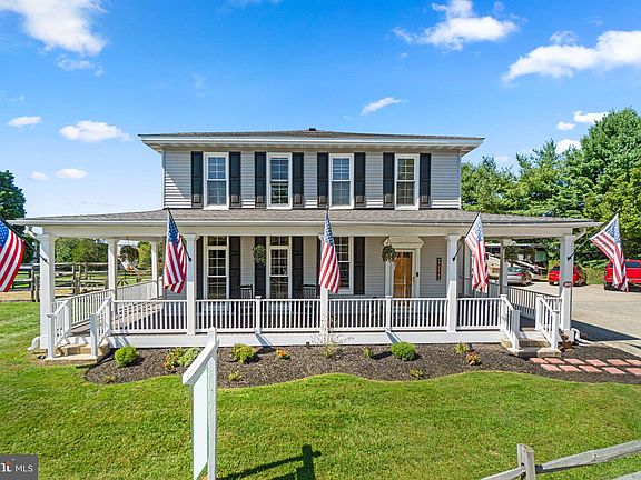 Own a Piece of Howard County History! Nestled on 1.3 acres and built in 1860, this beautifully updated farmhouse was once the general store of Daniels, Maryland. Today, it stands as a charming blend of historic character and modern convenience, offering spacious living, dual primary suites, and an incredible outdoor space—perfect for entertaining or enjoying the peaceful surroundings. Step onto the newly replaced TREX front porch and into the inviting living room, where natural light, custom crown molding, and a stone fireplace create a warm and welcoming atmosphere. The chef’s kitchen is a dream, featuring quartz countertops, stainless steel appliances, ample cabinetry, and abundant natural light. A separate dining room with built-in shelving and a generous pantry adds elegance and functionality. The main-level primary suite offers private access to a covered porch, a custom walk-in closet, and an updated en-suite bathroom with heated floors, making one-level living possible. A laundry room with added storage and a built-in work counter completes this floor. Upstairs, you’ll find a second primary suite with an updated bathroom, plus two additional spacious bedrooms and a third full bathroom. Gleaming hardwood floors and neutral paint run throughout the living spaces. The unfinished basement provides ample storage, while two back porches offer direct access to the kitchen and main-level primary suite. The fenced backyard is an entertainer’s paradise, featuring flagstone walkways, a charming gazebo, a large open deck, and a 20x20 high-fenced garden—perfect for growing vegetables or flowers. The detached garage is a standout feature, boasting two car bays, a spacious workshop with cabinetry and a workbench, and a third oversized bay opening to a covered patio in the backyard. The expansive concrete driveway offers ample parking, including an RV-compatible outlet. Located within the sought-after Mt. Hebron school district, this home provides easy access to shopping, dining, and major commuter routes. Don't miss this rare opportunity to own a historic gem with modern upgrades—schedule your tour today!