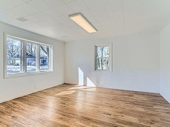 Fall in love with this picture-perfect home, beautifully remodeled from top to bottom and nestled on an oversized lot in the heart of Downtown Lakeville. Bright, clean, and move-in ready, this home welcomes you with sun-drenched living spaces, brand new flooring, and a fresh, modern kitchen outfitted with sleek white cabinets and stainless steel accents.