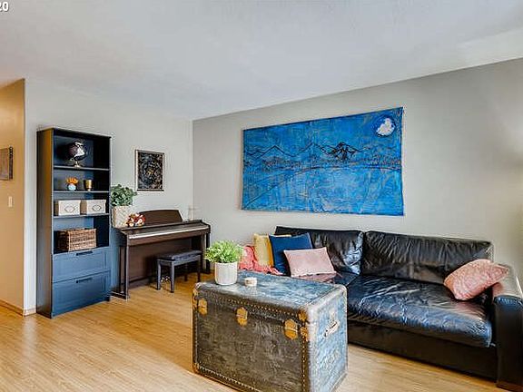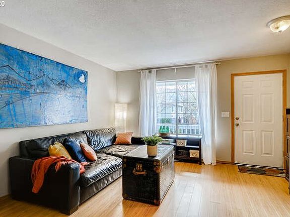 Everything you need: 2 bedrooms, 1.2 bathrooms w/ a dedicated office space large enough for 2 people to work from home & an outdoor patio! New appliances & washer/dryer included, dining area with access to your patio and extra storage under the stairs. 2 lrge bedrms, master has large closet & a bridge view. Bonus area / office space accented by a skylight. In the heart of St. Johns, next to Cathedral Park, No HOA, walking distance to St. Johns Farmers Market. See real video + 3-D tour too.