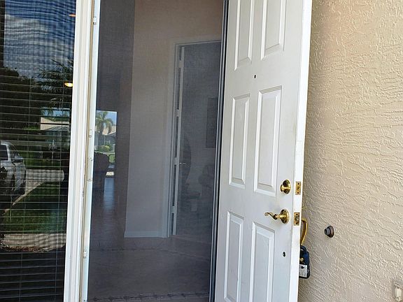 Upon entering your new home, you will notice a large entry foyer with designer inlaid tile, smartly mirroring the very high coffered ceiling and included entry chandelier. Throughout the home you will notice high quality, custom upgrades and built ins. The closets are custom cabinetry in all, and the 2nd bedroom has a beautiful office AND custom MURPHY BED built in, for space saving design. Continue past the 3rd bedroom (currently being used as a den) and you enter the great room/family room/ dining room area. The soaring ceilings and many windows lend your view to the serene lakefront. A premium lot, from the builder, this space boasts 62 feet of lakefront with views from everywhere. The rear paver patio, with 3 sliders opening to it, had been extended to span the width of the home. It is entirely covered with a reinforced "birdcage" screen, offering unbounded serene water views and pest free enjoyment. There are so many more upgrades to note in this house, that will help make this home a special place for the next lucky owners. Just add your personal upgrades and you will be able to say "just another day in paradise."