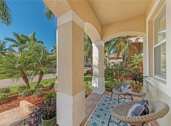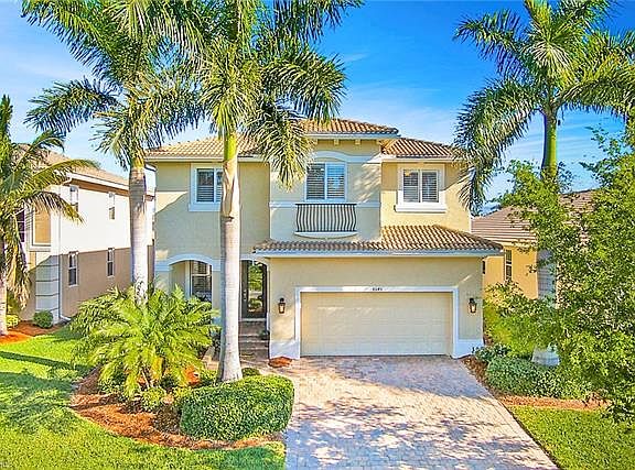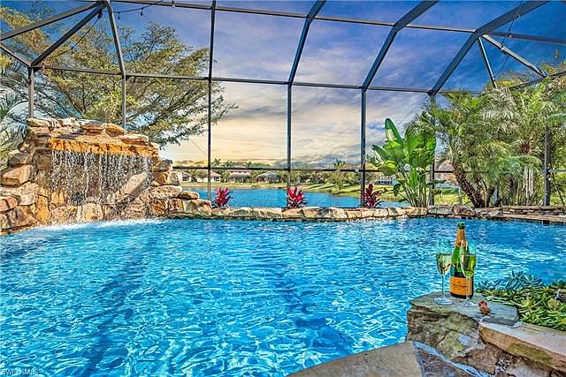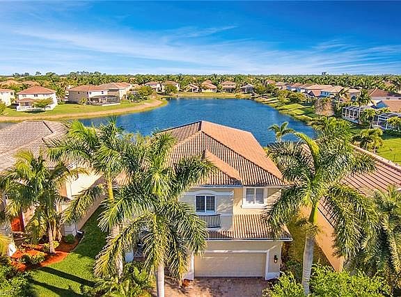 This elegant and comfortable custom two story home is located in Catalina Isles, which offers the best in luxury living in Southwest Florida. Step inside this 5-bedroom, 4.5-bath home, with a gorgeous tropical saltwater pool featuring a cascading 7' waterfall with a sun shelf and beautiful stone accents. The view continues as the home is situated on a lake with a mesmerizing long water view. Encompassing more than 3,100 square feet under air, the stunning floor plan is perfect for entertaining family and friends. All the bedrooms are located on the second floor. The chef's kitchen has staggered cherry cabinets, wine rack, upgraded stainless steel appliance including a double wall oven unit with convection, granite countertops, center island, and a tumbled tile backsplash. The laundry room also has cherry cabinets and a front load washer and dryer. Bathrooms have granite countertops and glass door enclosures for tubs/showers. Additional upgrades include tile on the diagonal, crown molding throughout, and wide wood plantation shutters on most windows. A remarkable property conveniently located close to beaches, entertainment, shopping and the airport.