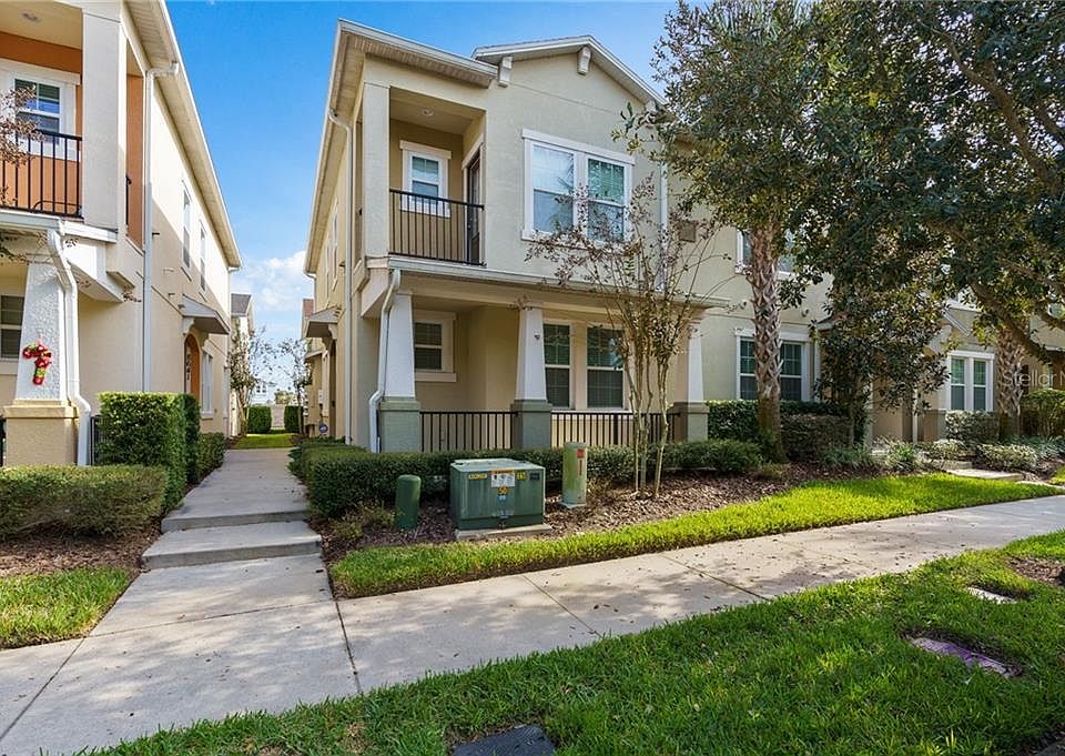 This incredible END UNIT townhome in highly desired Windermere is the larger 2,464 sq ft model featuring 10' ceilings, gourmet kitchen with 42" solid wood cabinets, granite counters and stainless appliances. There are 4 bedrooms and 3 full baths plus a downstairs half-bath for guests. The 1st-floor master has walk-in closet and bath with separate shower, dual sinks and privacy door. Up the wood staircase you'll land in the roomy loft leading to 3 additional bedrooms (incl a JUNIOR master suite with walk-out balcony) plus laundry room. Outside spaces include a covered porch in front and covered patio in the pavered courtyard just out the backdoor leading to oversized 2 car garage and 1 bedroom/1 bath detached APARTMENT over the garage that features granite kitchen counter, BACKSPLASH, STAINLESS appliances, and stackable washer/dryer hookups in laundry closet. Great location in quiet neighborhood with views of Disney fireworks and close proximity to shopping and dining at Lakeside Village. Short distance to Disney, Winter Garden Village and Doctor Phillips.