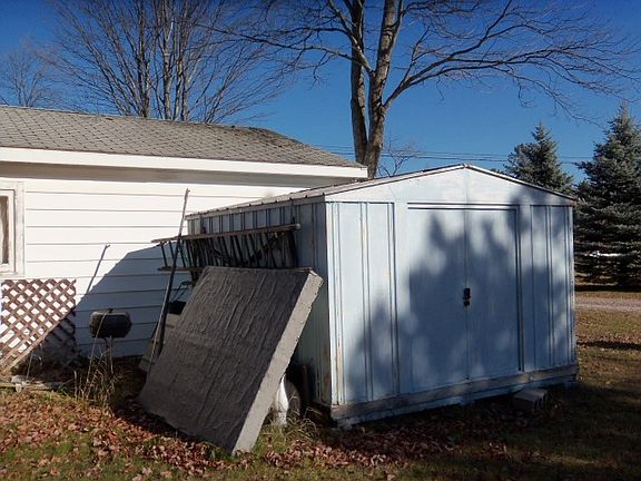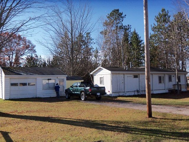 This older 2 bdrm, 1 bath mobile home has all the comforts of home, washer, dryer, stove, frigerator, lots of storage sheds for the toys and a garage/workshop. It's backed up to State Land on the south side. There's a nice size living room addition on the back side of the home. A newer well has been recently installed. Mixed hardwoods and conifers offer a beautiful backyard. Circle drive gives easy access to main road.