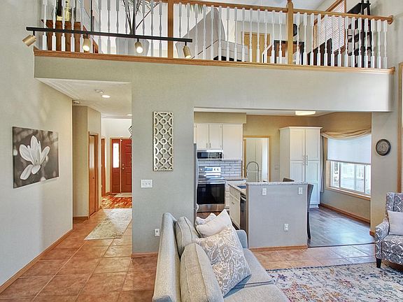 This beautiful 4 Bedroom Townhome is a must see property. The Main Level features a Living Room with a gas burning fireplace and an 18 high vaulted ceiling. There is a large eat in Kitchen that has been completely updated to included stainless appliances, a countertop eating area on a peninsula island, new hard surface countertops and a tile backsplash. A Formal Dining Room leads out to a new private maintenance free deck on the back and side of the home. There is also an Owner's Suite with in-floor heat, a walk-in closet and a private Bath with a Jetted Tub and Separate Shower. The Laundry is in the 1/2 Bath next to an Office off of the Foyer on the Main Level. The upper level has a loft that looks over the Living Room as well as a finished Storage Room, 2 Bedrooms and a Full Bath. There is a huge Family Room on the Lower Level along with a Finished Storage Room,Bedroom, 3/4 Bath and a Utility Room. Beautiful neighborhood with many parks and paved trails nearby.