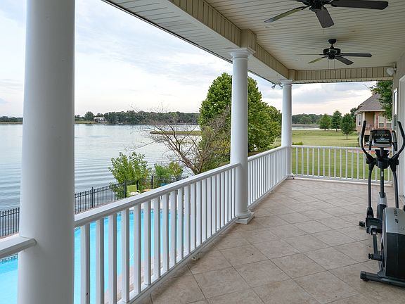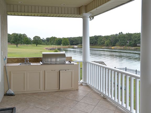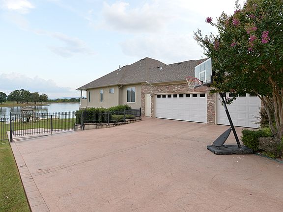 Exclusive 4 bedroom on lake front w/heated pool & spa, private dock, chefs kitchen, outdoor kitchen w/sink & grill. 2000 sq. ft. of garage storage. Gated community-fabulous home! Safe room downstairs. Man cave and storage all under house (perfect for storing boat & jet skis)! Iron fence around pool! All stainless steel appliances & granite in the kitchen.