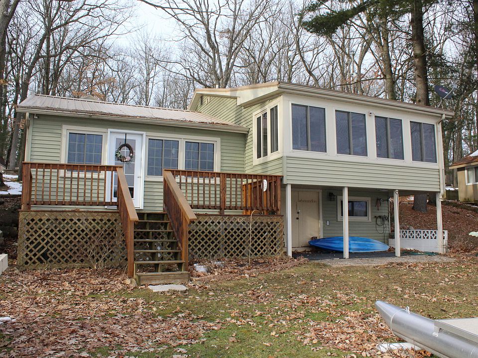 Year around home or cottage on Spring Lake,w/80 ft of frontage,part of the West Lakes chain of lakes in Montcalm County.About an hour from Grand Rapids & 1 1/2 hours from Lansing.This is a 52 acre no wake lake w/access to several smaller lakes located in the Langston State Area. his home has been very well cared for.Originally when purchased,it had 2 small bedrooms, but this owner created 1 large bedroom w/a half bath. Living room has a vaulted ceiling overlooking the lake w/access to the deck.Nice size kitchen w/ceramic flooring(appliances included) w/large snack bar open to a good size eating area. Slider to a 3 season porch overlooking the lake w/access to the deck.Full bath & laundry room off from the kitchen.Partial walkout basement is used for the mechanicals & storage.