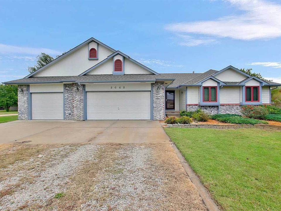 This is what you have been looking for! A Country property with 2 out buildings in Derby Schools! The 30X40 building has a forced air heater and the 16X25 has a 220 volt. Nearly 1 acre property has large remodeled kitchen addition with granite countertops, huge granite island, large walk in pantry, commercial grade double convection ovens, gas range top and vaulted ceilings. Living room has brand new hardwood floors, wood burning stove and vaulted ceilings. Master suite offers quartz top vanity with slow closing drawers, walk in closet and access to deck that wraps the backside of the house. Updated bathrooms throughout with fresh interior and exterior paint. Don't miss the main floor, separate laundry room with wash sink! Downstairs has oversized family room with wet bar, remodeled full bathroom, extra bedroom and bonus game room or office! The home has been set up with a port for a whole house generator. You won't want to miss your chance to have country living with easy access to Derby! The bermuda grass goes dormant in the winter so it will naturally turn brown. Call for your private showing today!