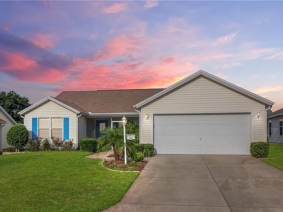 Lovely 3/2/2 designer BOUGAINVILLEA in Briar Meadow. OPEN CONCEPT with SPLIT FLOOR PLAN, volume ceilings, no "popcorn". The kitchen boasts STAINLESS STEEL appliances, nice new CORIAN COUNTERS with a BREAKFAST BAR and ample cabinets. Engineered HARDWOOD in the living, dining, and kitchen areas, nice carpeting in the bedrooms, CERAMIC tile in the laundry with newer Washer and Dryer. Natural GAS hot water and other gas appliances reduces operating costs and is efficient. TURNKEY (all furnishings and household items-excepting personal items to be removed) and GOLF CART included with the sale! Located in a quiet, low traffic area, the home can be enjoyed year-round or seasonally, especially with a sizeable enclosed (with screens) carpeted LANAI. A NEW architectural ROOF is scheduled to be installed in late August, 2020. The neat two car garage also has a remote door opener. A whole house water softener/filter is also included. Well LANDSCAPED and with easy access to GOLF courses, recreation, shopping, churches, and everything The Villages has to offer. At this price, this listing will not be on the market very long! Call today for an appointment to see this terrific offering!