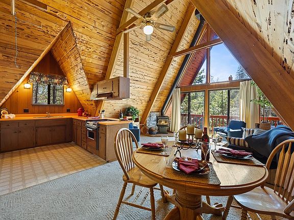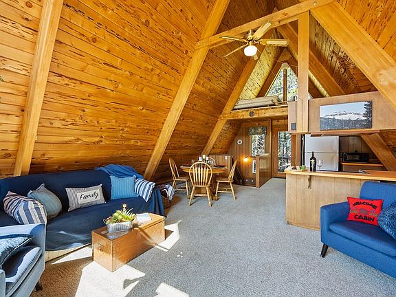 Classic 1970's A-Frame that has been "lifted". It now has the convenience of a garage with plenty of storage, forced air heating, and washer dryer. Enjoy the wood stove in the living room or simply turn up the thermostat. This 3 bedroom 1 1/2 bath cabin is fully functional now, or ready for an update if you choose. Located in the highly desirable community of Serene Lakes and priced to move. Close to Sugar Bowl and skiing all over the Summit with easy access from from I 80. Summer has arrived and the lakes are close too with endless activities. Come and see for yourself! The garage is plumbed for a third bathroom and has potential for a game room for ever more convenience and space.