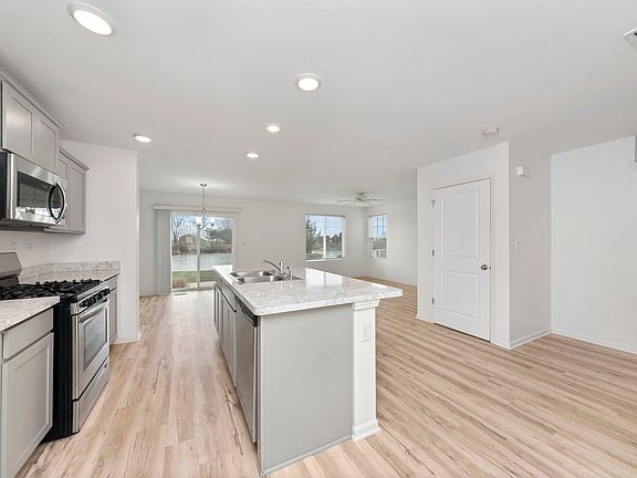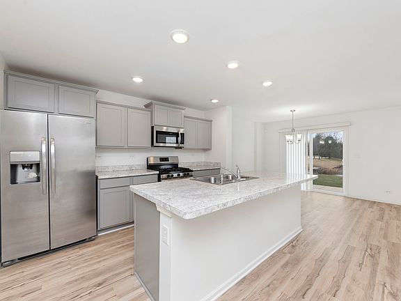 Just 6 years new, this stunning 1,571 sq. ft. Stirling model combines modern design, functionality, and timeless charm. Boasting 3 spacious bedrooms, 2.5 bathrooms, and a 2-car garage, this home is perfect for those seeking style and convenience. Step inside to discover an open-concept layout that seamlessly connects the great room, dining area, and a luxurious kitchen. The kitchen is a true centerpiece, featuring abundant counter space, sleek gray designer cabinets with crown molding, stainless steel appliances, and an expansive island, making it ideal for hosting gatherings or enjoying casual meals. Upstairs, you'll appreciate the convenience of a second-floor laundry room, saving time and effort. The primary suite is a retreat of its own, offering a generously sized walk-in closet and an en-suite bathroom complete with a double bowl vanity, perfect for starting or ending your day in comfort. The attention to detail continues outside with architectural shingles, elegant brick accents, and professional landscaping that create exceptional curb appeal. The low-maintenance home site allows you to spend more time enjoying your surroundings. Nestled in the sought-after Windsor Ridge community in Joliet, this home is within walking distance of parks, an elementary school, and a middle school, making it a fantastic location for families. Plus, it's part of the highly acclaimed District 202 school system. Windsor Ridge offers a captivating neighborhood atmosphere with its thoughtfully designed amenities, ensuring a lifestyle of convenience and enjoyment. This home is a perfect blend of modern elegance, practical features, and an unbeatable location-don't miss out!