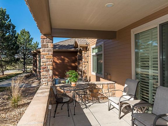 Colorado's premier, gated resort community, where amenities abound! Popular ground flr ranch plan is across from park & is heavily upgraded, w/no stone left unturned! Unparalleled community amenities with 29,000 sq ft clubhouse, pool, sports field, priv BBQ pavilion, spa & more! Cov'd patio w/nat gas grill incl. Cstm storm door w/sliding glass & built-in screen. Pella windows & Graber plantation shutters. Qual lam wood flooring. Fresh interior paint. Three-way fireplace. 42" cherry cabs w/crown & trash rollout. Slab granite w/trav & glass bcksplsh. Upgraded stainless appliances w/gas stub behind stove. Island seats two. Blanco composite sink, new faucet, new disposal, Culligan water filter dispenser. Mstr has lrg walk-in & beautiful bath. Secondary has sliders to patio & is across from shared full bath. Mudroom has util sink & incl front loading W/D. New 50 gal water htr & Culligan water softener. Furnace & A/C recently cleaned & svc'd. Roof about 1.5 years. Oversized garage w/storage!