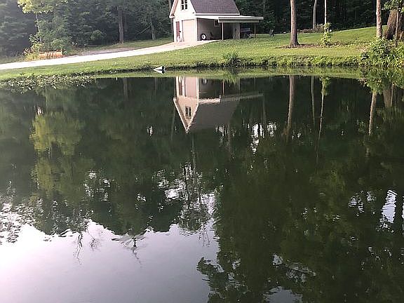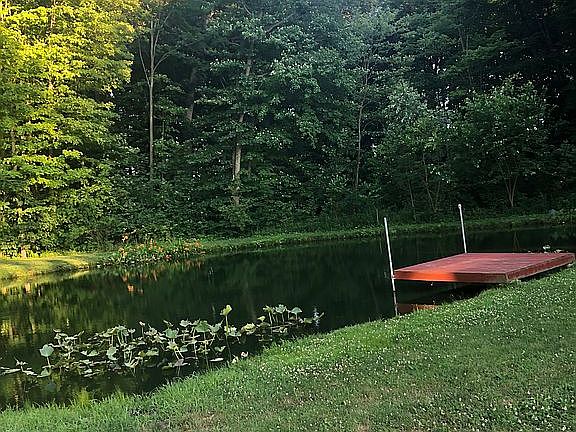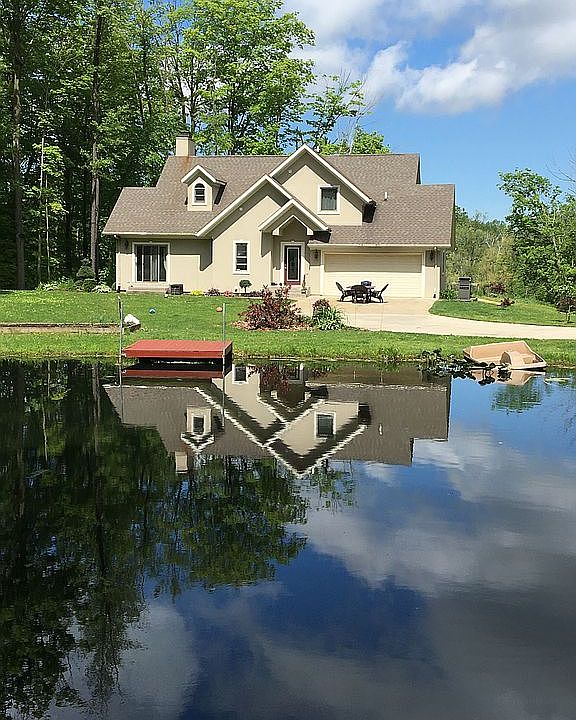 Stucco exteriors, large deck overlooking wooded lot and ponds, awesome wildlife viewing from multiple window arrangements, fishing ponds, vaulted ceiling, finished basement/game room, walkout basement, sledding hill, fireplace with high efficiency wood burning unit.