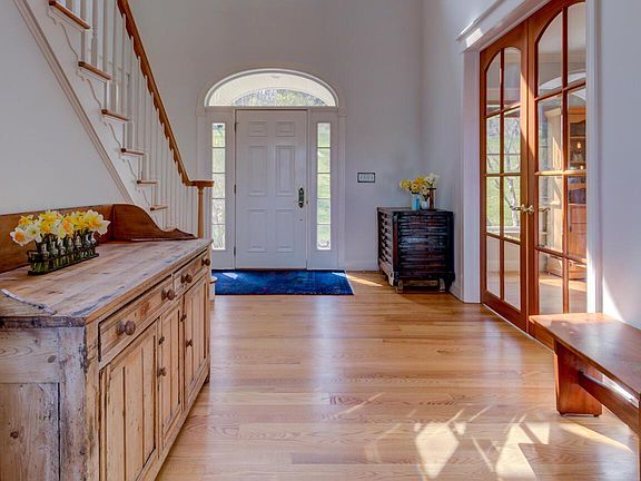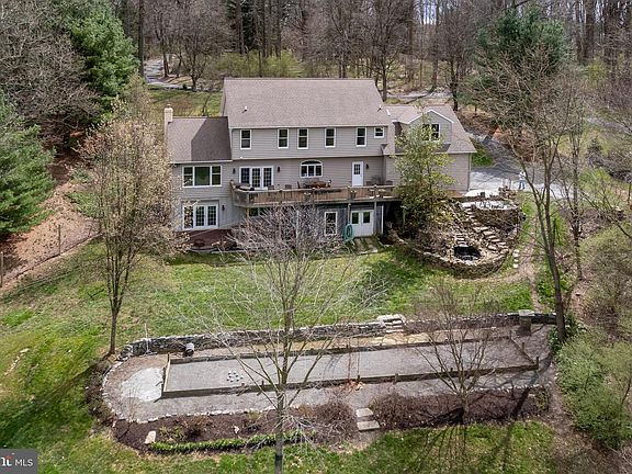 This quality built and stately 4 BR 4/1 BA home in desirable Unionville Chadds Ford School district offers a huge foyer with soaring ceilings, open floor plan, miles of hardwood floors, custom doors and trim work, 9' ceilings throughout, a spacious chef’s kitchen, huge primary bedroom with sitting area and envious en suite bath, two home offices, partially finished walk-out basement, wine cellar, and large deck overlooking the meticulously landscaped private rear yard with bocce court, water features, and park-like 3-acre lot. You are welcomed in along a meandering stone pathway with well-maintained mature landscaping, to a covered stoop with portico. Inside, the soaring foyer with dramatic staircase and gleaming hardwood floors sets the tone for an airy open concept floor plan, with large but comfortable rooms. Palladian windows that pour in tremendous light, recessed lighting, generous door molding, crown molding, baseboard, and chair rail speak to the craftsmanship throughout the house. The living room is bathed in light from large windows that surround the room, with a floor to ceiling stone fireplace with custom mantle and insert with blower creating the perfect cozy spot on cool evenings. The chef’s kitchen has a large 8’ island with seating, 42” crisp white cabinets with crown molding, custom glass feature doors, and pewter knobs, granite counters, double oven, propane cooktop, dishwasher, refrigerator, pantry closet, and French door to the deck. The dining room is generous with custom glass doors that add a charming architectural detail. Just beyond kitchen you will find a mud room with access to the deck, laundry room, large closet, and entry to the 3-car garage. The first floor also boasts a powder room, and office. The second level features a huge private primary suite sanctuary which consists of the main bedroom with tray ceiling, attached sitting room area, tiled full bath boasting a double vanity, stylish soaking tub with upscale fixtures, and a stunning tiled stall shower with a wall of glass, and walk-in closets. There are 3 additional bedrooms - one has an en suite bath with custom tile stall shower and another is very large with multiple closets and storage – and recently renovated full bathroom. The partially finished walk-out basement provides additional family room or recreational space, with pellet stove, a second home office, wine room with summer time cooling, as well as an additional full bath. The large deck is private, perfect for relaxation or hosting friends for dinner, and overlooks extensive landscaping, a Koi pond with water feature, a bocce court, and a park-like 3-acre lot. There is a convenient storage shed under the deck. Other custom upgrades include: Generator panel, a Superior Wall foundation, new dual zone HVAC 2021, partial lot deer fencing, and chicken coop. This home has everything – plenty of space, custom upgrades and fine craftsmanship, comfortable outdoor living space, and the feeling of being on a country estate, yet super close to downtown Kennett Square’s fabulous restaurants and shopping, Longwood Gardens, and convenient commuter routes.