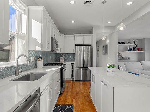 Welcome to this stunning penthouse at City Point, ideally situated on the coveted East Side of South Boston.This renovated 2-bed, 2-bath home has been thoughtfully designed to maximize both space and functionality. The open-concept kitchen, living, and dining areas create a seamless flow, perfect for entertaining or setting up a dedicated work-from-home space. Just off the dining area, you'll find a private outdoor space. The chef's kitchen features sleek stainless steel appliances, custom cabinetry, and a breakfast bar with additional storage combining both style and practicality. The spacious primary bedroom boasts a bay window with sweeping views of the city skyline. The 2nd bed is versatile, offering plenty of space for a guest room or office/gym, depending on your needs. But it's the oversized private roof deck that truly sets this home apart offering breathtaking views of the city and harbor. This home also includes the added convenience of two parking spaces, one of which is in a secure, covered garage. With its sophisticated design, abundant natural light, and unparalleled outdoor spaces, this home delivers the ultimate in modern city living.