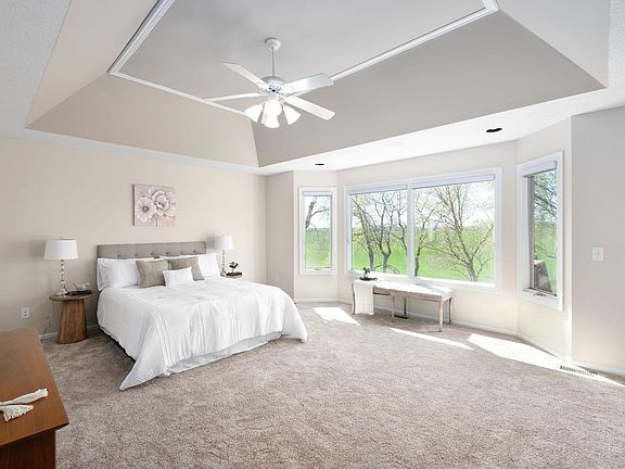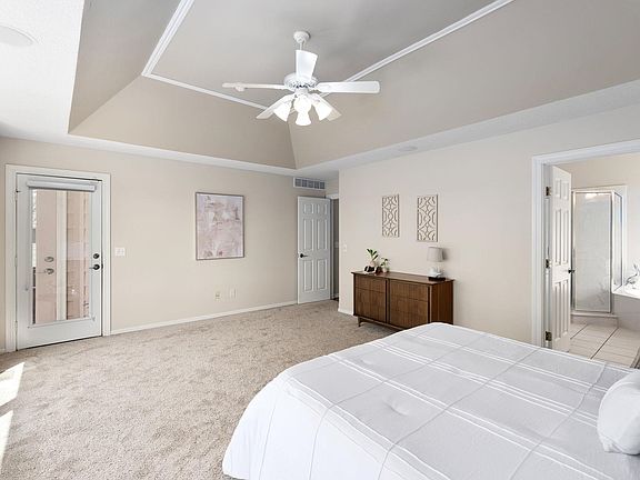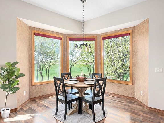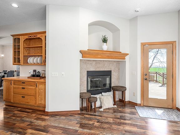 Welcome home to this sprawling 5bed/3bath/3car ranch on over half an acre in the peaceful town of Clearwater, KS. This home has no rear neighbors, offering tranquil views of the rear tree line and adjacent field. As you enter the home, you'll be impressed with the newer engineered hardwood flooring throughout the common areas, the tall ceilings, and the abundance of extra large windows, which give this home a light and airy feeling. The living room and kitchen share a two-way gas fireplace, and a formal dining area just off the front door allows room for large family gatherings or entertainment. The kitchen is expansive, featuring a huge center island with granite counter top and eating bar, built-in desk and hutch, a full set of stainless steel appliances, multiple pull out shelves in the cabinets, and tons of storage. The adjacent breakfast nook has floor-to-ceiling windows surrounded by trees at the exterior, allowing another place to relax and enjoy the space. The master bedroom is sizable, boasting a coffered ceiling, access to the rear deck, new carpet, and en suite bath with dual vanities, separate shower and jetted tub, and generous walk-in closet. The main floor is completed by a second spacious bedroom with vaulted ceiling, full hall bath with tub/shower combo, and separate laundry room off the garage. In the walk-out basement, you'll find an extensive living/rec room with large wet bar, pellet stove, and built-in display shelving and cabinetry. Three over-sized bedrooms with tons of closet space, a nautically-themed full bath, a safe room, and mechanical/storage room complete this level. In the garage, there is an additional bonus storage room with built-in shelving with access stairs. Mechanical upgrades include an updated HVAC system (2019), LED lighting throughout, new front concrete, new back door, and new porch rail. Exterior amenities are plentiful, including a generously-sized fully-fenced yard with irrigation well and sprinkler system, exterior wiring for a hot tub, newer landscaping, and again, that gorgeous tree-lined rear view of the vacant field. This home has NO SPECIAL TAXES, and is located in a neighborhood with catch and release ponds and walking paths. They're going quickly in this market. Come see us before it's gone! *See the promo video for additional views of this property.*
