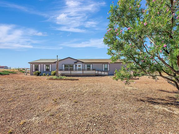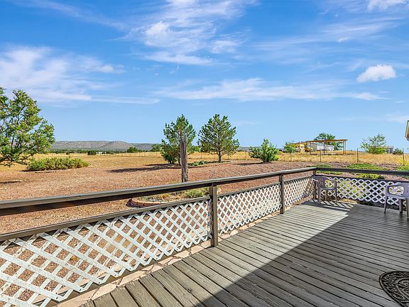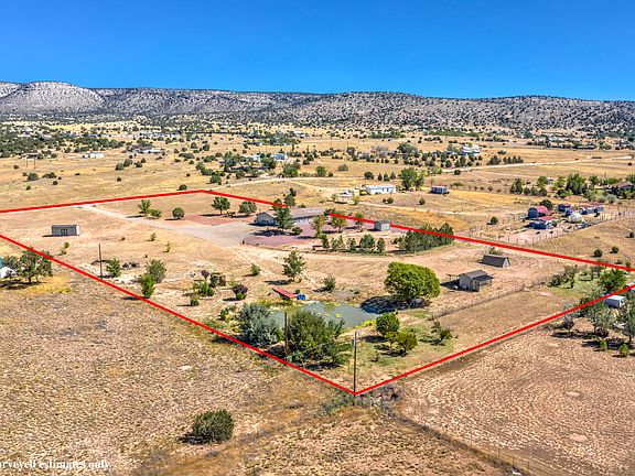 Fantastic & Large Home on 5 Beautiful Acres! This All-Electric Home Boasts a Functional Split Floor Plan w/3BR, 2 Full Bathrooms, Tech/Office Area & Large Family Room w/WBFP and Surround Sound! Home is Super Clean w/Laminate & Vinyl Flooring Throughout! Abundant Storage w/Built-In Tech Center Desk & Dining Room Cabinetry! Wonderful Full-Length Enclosed Back Patio to Entertain & Enjoy the Panoramic Views! Home has been recently painted and releveled. Fully Fenced w/Walk-thru & Drive-thru Gates! 4 Out Buildings w/Power, 5 Water Spigots, Fishing Pond w/aerator & 30-Fruit Tree Orchard! Ceiling Fans throughout & Great-Producing Water Well w/3 New Pressure Tanks! New Landscape Rock w/RV Hookups & 1200-gal. Septic Tank! Paved Roads all the way, only Last Half-mile Dirt. Fantastic Granite, Bradshaw & Mingus Mountain Views and Only 2 Miles to Prescott National Forest! Country Living at its Finest...Must See to Appreciate!