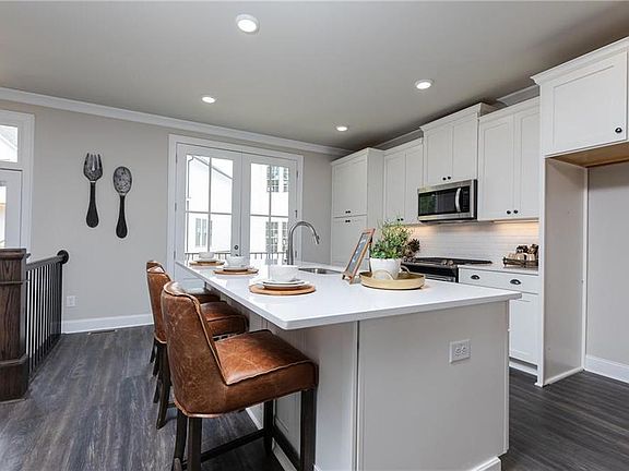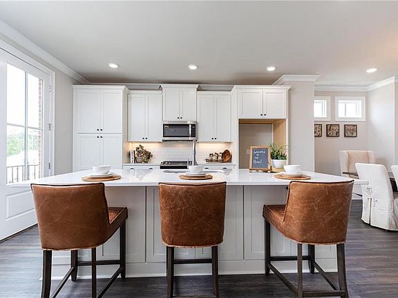 Graham T- Beautiful three story farmhouse style townhome with an open and spacious design. Gourmet kitchen is just waiting for you with quartz countertops, tile backsplash , and HUGE island. Perfect for eat- ins or entertaining. Kitchen opens to dining room, family room, and even the sunroom. Rear deck for relaxing at the end of the day. All bedrooms have private bath & walk-in closets. Beautiful flooring on the main and staircase. Master bath has a large frameless shower and separate tub. Laundry area upstairs near master bedroom for added convenience. Easy walk to Suwanee Town Center, close to the Greenway, restaurants, and so much more. Community pool and clubhouse. Walk to parks. North Gwinnett Schools. Pictures are a representation of the home, not of actual home. Exterior picture is not of actual home. Estimated timeframe for completion: May/June 2022 [The Graham]