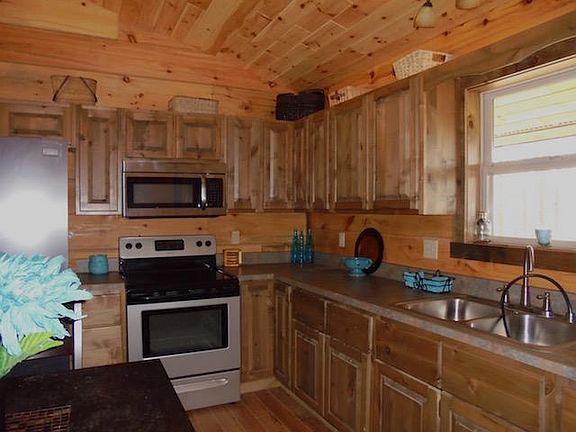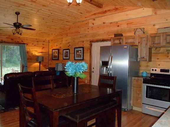 Two bedroom log home built in 2012 has open floor plan, stainless steel stove & refrigerator, laundry hookup with washer and dryer, full bath, electric heat, front porch, back deck, attached garage.Located in site condo community with shared access to Horseshoe lake and Nature Park. Area offers fine dining, world class golf, unique local shops, the AuSable River, many inland lakes, National Forest, State land. On paved county maintained road.