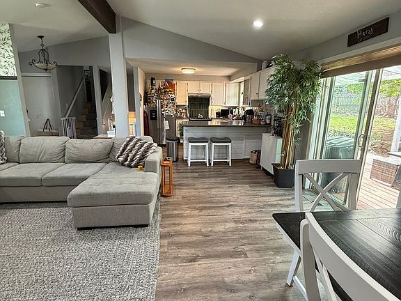 This stunning 3-bedroom, 2-bathroom home features a spacious open floor plan with soaring 15-foot vaulted ceilings that create an airy and inviting atmosphere. The artistically designed kitchen is a true centerpiece, showcasing custom tile work, quartz countertops, and sleek stainless-steel appliances - perfect for both everyday living and entertaining. Enjoy the comfort of two full spacious bathrooms and the convenience of a large two-car garage with automated doors and an oversized driveway. Step outside to find two back patios and a generous backyard with a rear gate, ideal for parking an RV or recreational vehicle. Located in the desirable South Salem area, this home offers both elegance and functionality in a beautifully maintained setting. Gas Furnace, and central AC maintain the perfect temperature. Smart light features located in the living space. Home has front stairs to enter.