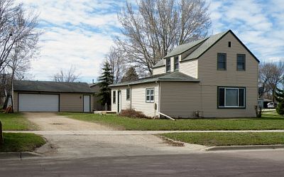 Corner lot home with a large kitchen, natural woodwork, hardwood floors, oversized double garage, main floor bedroom, landscaped and a large deck! New paint throughout!!