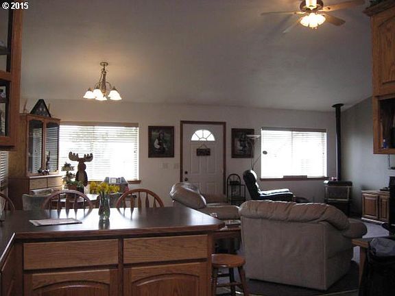 First Time Listed, built by original owners in 2002 still in like new condition. Three bedroom 2 bath has vaulted ceilings, spacious open oak kitchen with counter bar and seating, all appliances included. All natural gas heat and hot water plus a heating stove in living room. Two car garage with attached carport & storage shed also RV parking electric hookup and sewer dump. Fenced yard has sprinklers, garden, covered deck, huge views.