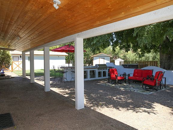 GREENBELT location in Cottonwood, AZ. Keep a beautiful, lush, green 1/2 acre yard watered for only $85 per year. Grandfathered irrigation rights are extremely desirable & make this a great choice for someone looking for their own oasis in a small town. Guest house offers income potential or multi-generational living opportunity. Back patio was designed for entertaining with built-in grill, hi-top bar seating, TV with cabinet, & hot tub. Mature Black & English Walnut trees provide shade & the perfect place for your tire swing. Clever storage for a riding lawn mower is designed into the play house which is complete with a rock climbing wall. RV parking. Seller has replaced all appliances & major systems (AC/Furnace/water heater) during past 2 years. All that remains is to move in & enjoy!