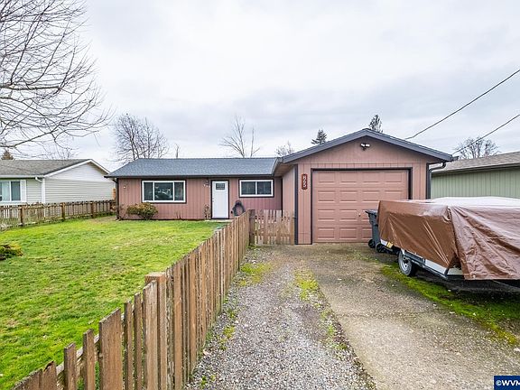 Fully Fenced Front and backyard with Covered back Patio, Fresh paint on exterior. Cozy pellet stove in Living room. Updates included: New Roof as of Winter 2021, Water Heater 2020, Newer Appliances. Great One Story, 3 bedroom/1 bath home in Aumsville's great school district, and close proximity to hwy 22. Come check it out!