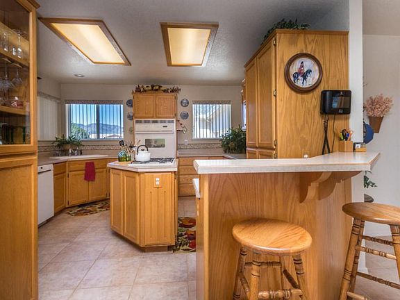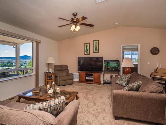 This is a wonderful home with panoramic views and many features located in beautiful Prescott Country Club. Excellent floor plan with spacious master, master bath has tub and separate shower, large kitchen with cook top island and plenty of counter space, gas fireplace for those winter evenings and a large workshop under the house. Both the garage and workshop also have a half bathroom. Gorgeous views from the front or the rear with a tiled and covered back patio to relax on. Don't miss all the beautiful landscaping with putting area. This one is special so come and take a look today.