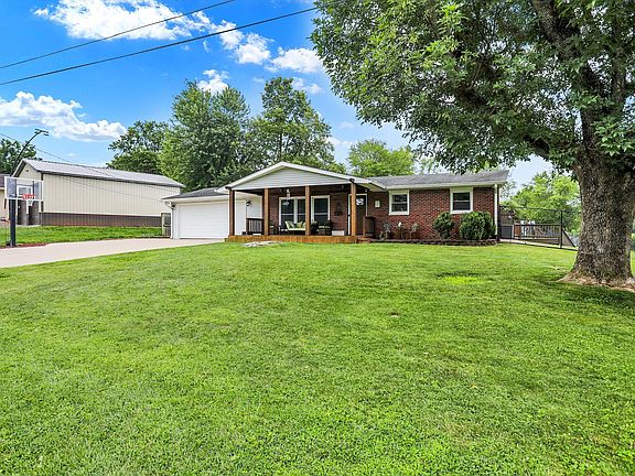 Beautifully updated 4-bedroom, 2.5-bath home featuring a modern kitchen with stainless steel appliances and a spacious dining room. Enjoy the convenience of a large attached 2-car garage, as well as an 18x20 detached garage with electricity, a concrete floor and paved driveway. The property also boasts a charming wooden porch with a ceiling fan, a fully fenced backyard, an above-ground pool, a sizable 12x24 metal storage barn with a concrete floor, and a treehouse. The basement offers a large great room and a convenient half bath. Basketball goal does not remain.