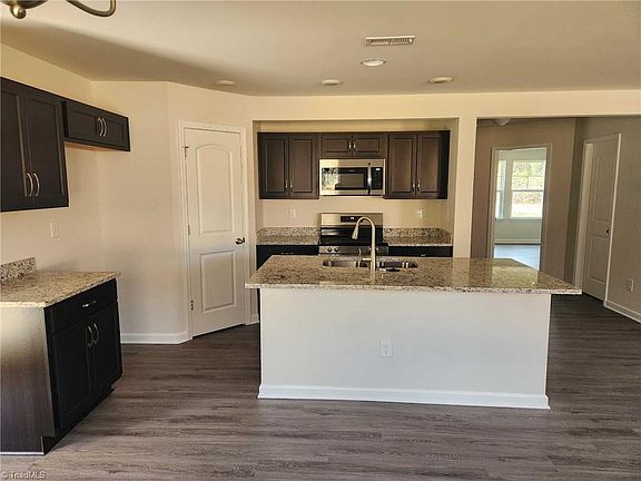 New, move-in ready in Lexington! About 2200 sq ft with 4 bedrooms, 3 full bathrooms, and a flex room. Open concept in living room, dining room, and kitchen areas. Granite countertops and stainless steel appliances in kitchen with island. Large primary bedroom with vaulted ceiling and 2 closets. Primary bath features a double vanity and separate shower and tub. Covered rear patio. No HOA.