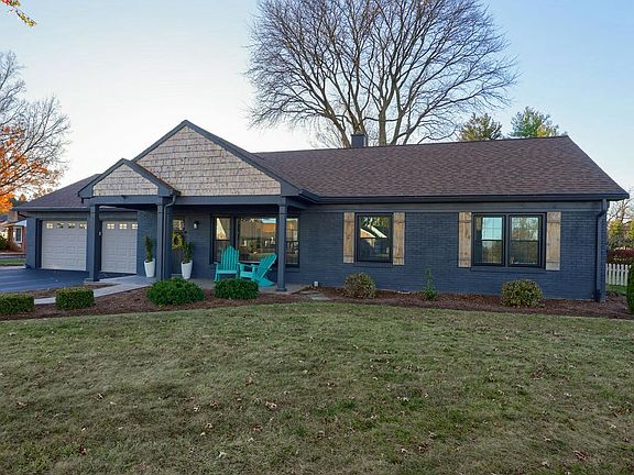 Situated in a peaceful neighborhood, this beautiful 3-bedroom, 2-bath home has everything you need for comfortable, single-floor living. With modern curb appeal and a welcoming front porch, the home showcases updates in every room, along with a newer roof, siding, and windows for added peace of mind. Step inside to a spacious living room, where a cozy wood-burning fireplace creates a perfect setting for relaxation. The open-concept kitchen and dining area features charming built-ins that offer style and extra storage. The dry basement provides lots of extra space to customize as you wish, while the oversized two-car garage ensures plenty of room for vehicles and storage. This home is truly a must-see!