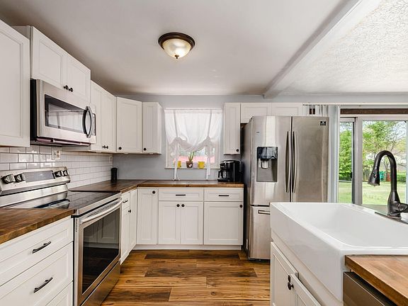 2019:Remodeled Kitchen: Cabinets, Gorgeous wood counter tops, Huge sink, Kitchen Island, subway tile backsplash, 2019:Stainless Steel Refrigerator, Dishwasher, Microwave & Ele. Range. 2020:New Entry Tile & Built-in Entry Tree Closet with pallet wood, 2019:Hydroguard Waterproof Laminated Flooring n Living rm &. 2019: Carpet upstairs, Upstairs Full Bath,2020: Tub & Floor. 2018:new front Concrete, 2018: Furnace & A/C. Lower level half bath, can have Washer & Dryer hookup placed back. Lower level has huge walk in closet that could be used as a Office. 4th level has Culligan Water Softener. Rec room plus utility room and storage room on 4th level. Living room TV mount remains. Kids Swing set, Shed and glider conveys with the property. Cameras: front & back porch remain