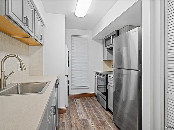 Welcome to the most stunning 2-bed, 1-bath remodeled Quebec Plaza Condo in the heart of vibrant Denver, Colorado! This exquisite unit offers a perfect blend of modern upgrades and cozy comforts, creating an inviting space at an affordable price. The prime location provides easy access to all Denver offers, with nearby shopping, dining, parks, and schools within the neighborhood. The thoughtfully executed remodel showcases contemporary finishes and design elements, elevating the condo's appeal for a turnkey living experience. The spacious layout maximizes functionality, and the open-concept living and dining areas make entertaining or relaxing a joy. A modern kitchen with sleek countertops, stainless steel appliances, and ample storage caters to culinary enthusiasts and casual cooks alike. The two generously-sized bedrooms offer a tranquil retreat, while the remodeled bathroom presents a spa-like ambiance. Step outside to your private covered balcony. The condo includes dedicated parking, extra guest parking, and a large storage unit. Whether you seek a delightful home or an investment opportunity, this condo's ideal location and strong rental demand make it a highly attractive option.