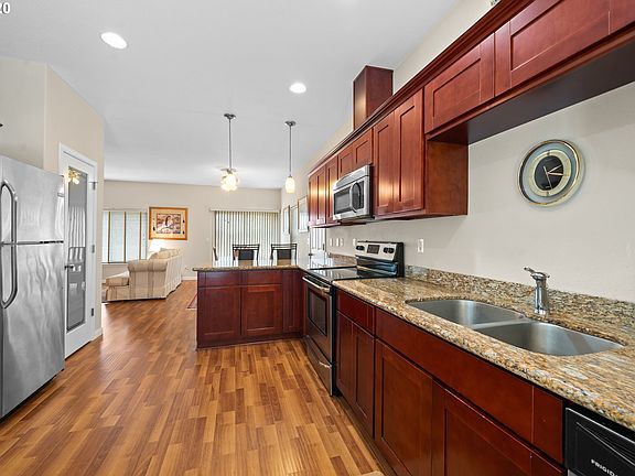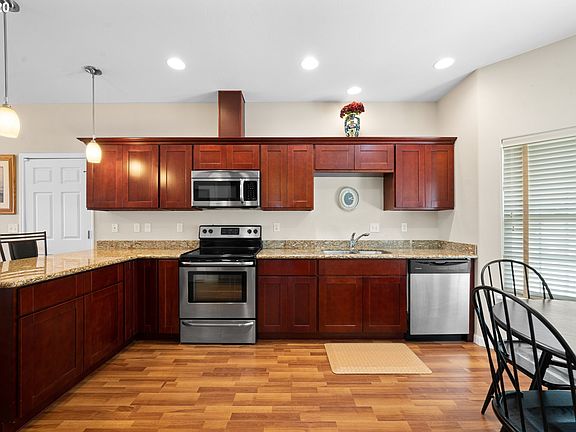 Charming 3 bedroom, 2 bath home in Estacada! Built in 2014, this home has all the modern finishes but the quiet neighborhood retains a peaceful small-town feel. Enjoy mealtime in your sunlit dining room or opt for a sunset view on your back deck out the sliding glass door. Kitchen has granite countertops, breakfast nook, SS appliances and pantry. Master bedroom has own bathroom and large walk-in closet. Oversized lot with fully fenced backyard and two car attached garage.